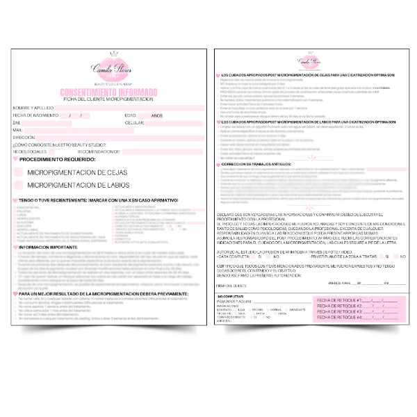 -PERSONALIZACION: podes diseñar tu consentimiento informado de micropigmentacion